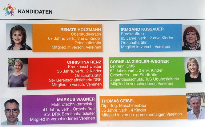 Kandidatinnen und Kandidaten der BfE für den neuen Ortschaftsrat 2019